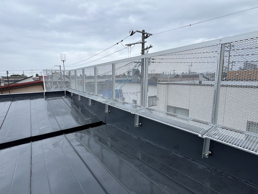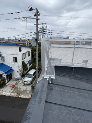 1.屋上防水は塩ビシート工法のため経年劣化による防水シート張替工事の際はパラペット笠木金具を破損させずに装置の取外し再取付け可能な構造です。